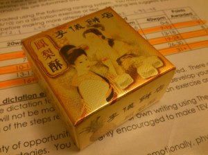 Edit: Besides slaving over the dictations, I also had a midnight snack! I got these from Taiwan; they’re mini pineapple cakes! Really well known from there.