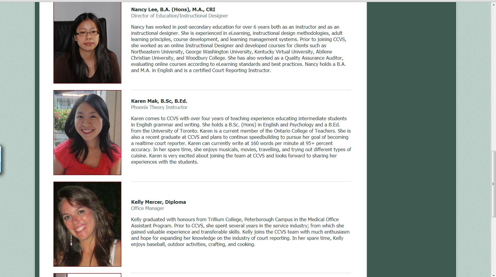 A screen shot of me as part of the Staff bios on the school website! Never in a million years would I have guessed that I would become an instructor at the school. This year, I’m actually both student and instructor! (since I’m still practicing on my speeds to get to realtime) 🙂