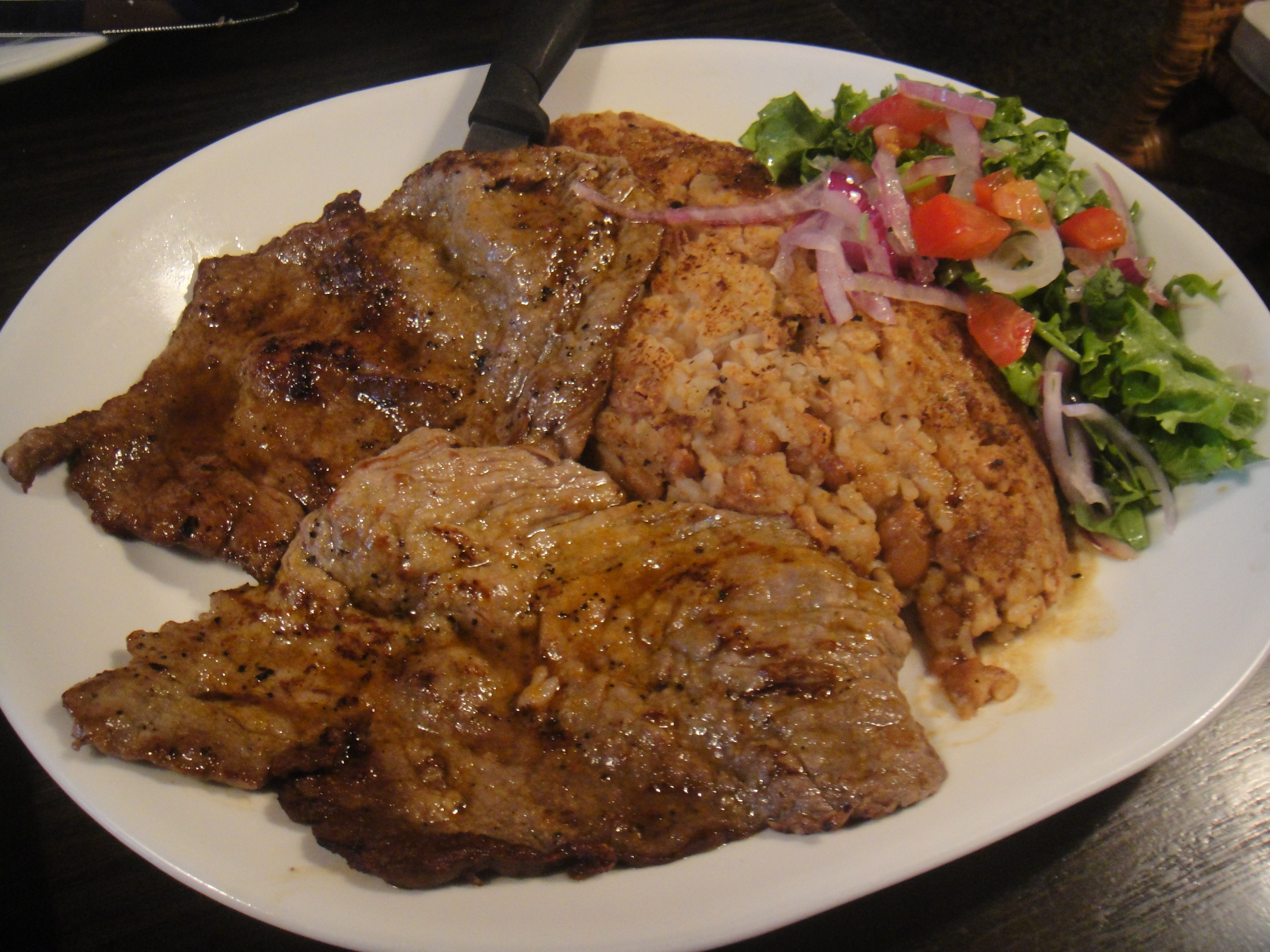 We were both a little obsessed with the fried fish and seafood plate that we left this a little too late too try. Since everything arrived together, this got a bit cold and wasn’t as good as if it was probably eaten hot. The beef was cut very thinly but flavourful if a little rough. The rice was mixed with beans which was a little mushy to the taste, so it was definitely something different. The salad was the same as the previous one.
