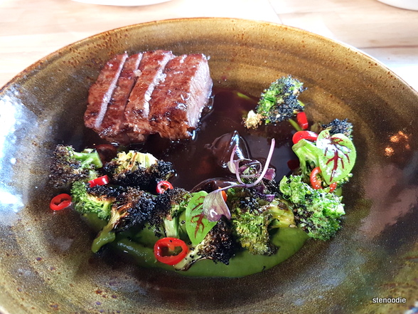 The Dry-Aged Beef Loin held up the high presentation standard with a cluster of broccoli florets between sliced red pepper on the side of the plate. The beef loin was also a bit bland for my taste (also, the portion of the beef loin was rather small). The purée in the dish was delicious.
