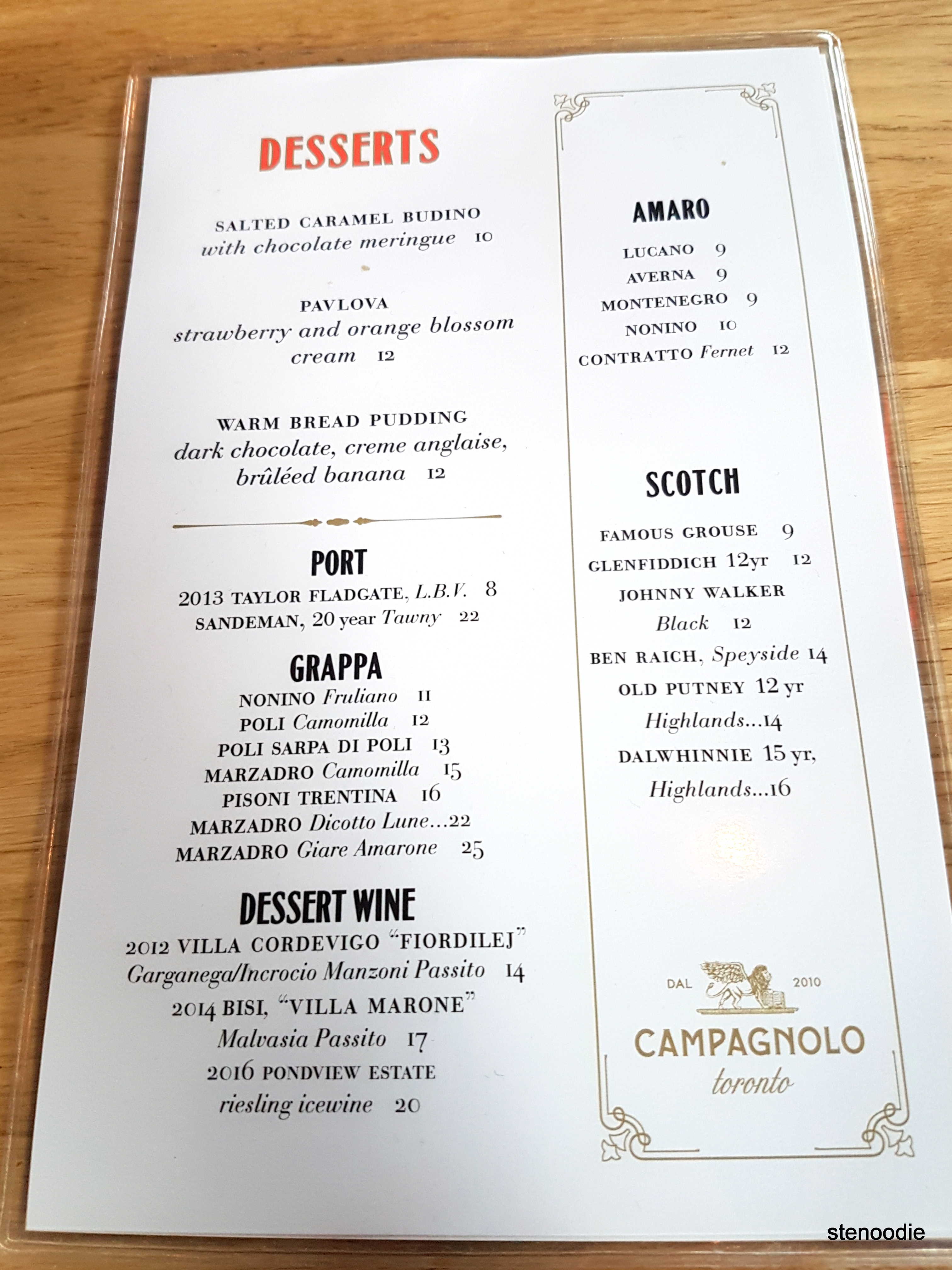 May 21, 2019: It seems like a number of well-established restaurants are closing this year in Toronto. The next one to bite the dust is Campagnolo, a sophisticated Italian restaurant on Dundas Street West. I remember passing by this corner restaurant numerous times when I was walking down this street. The logo of their restaurant name on the glass windows was something I noticed every time I passed by. It seemed like such a classy restaurant and one that I had wanted to visit for a while.